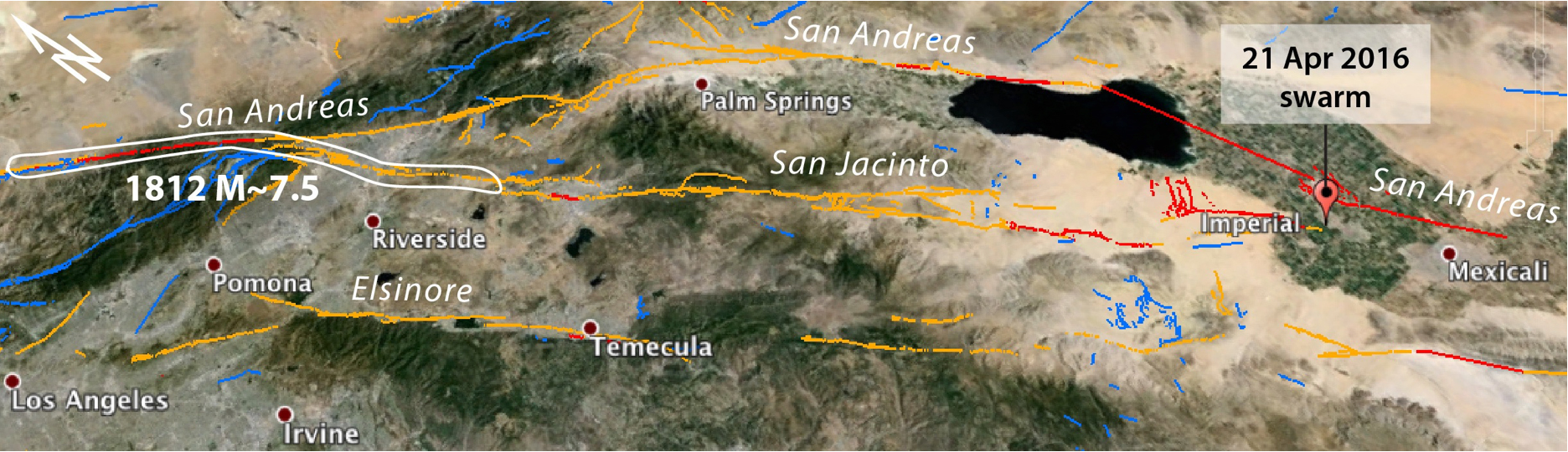 Imperial seismic swarm lights up the southern tip of the San Jacinto from temblor.net